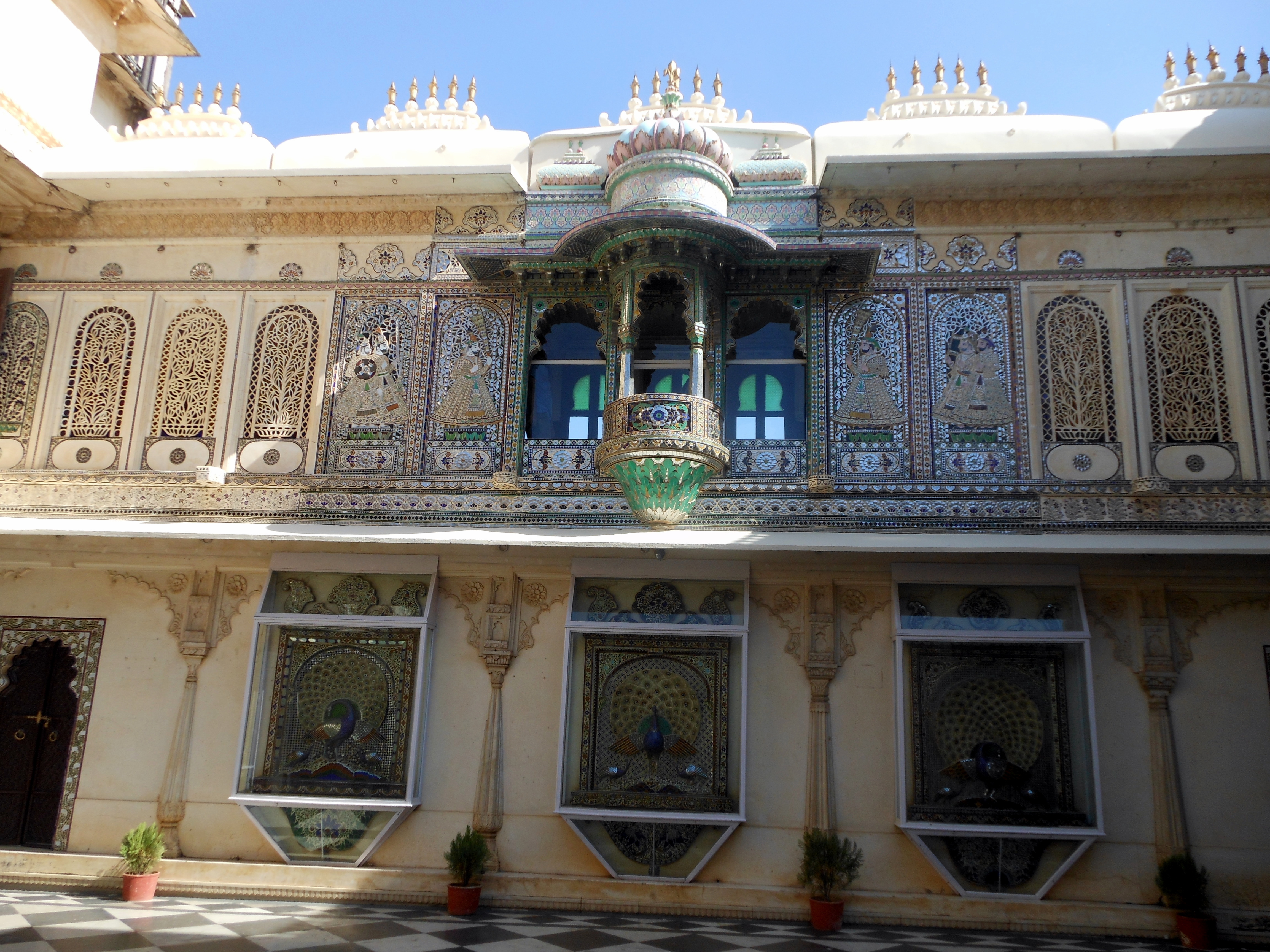 The most spectacular courtyard of the palace is Mor Chowk or Peacock courtyard made of glass mosaic.